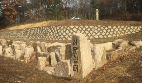 여기서 다시 왼쪽으로 약 30m 쯤 들어가면 산기슭에 후산 선생의 산소가 있다.